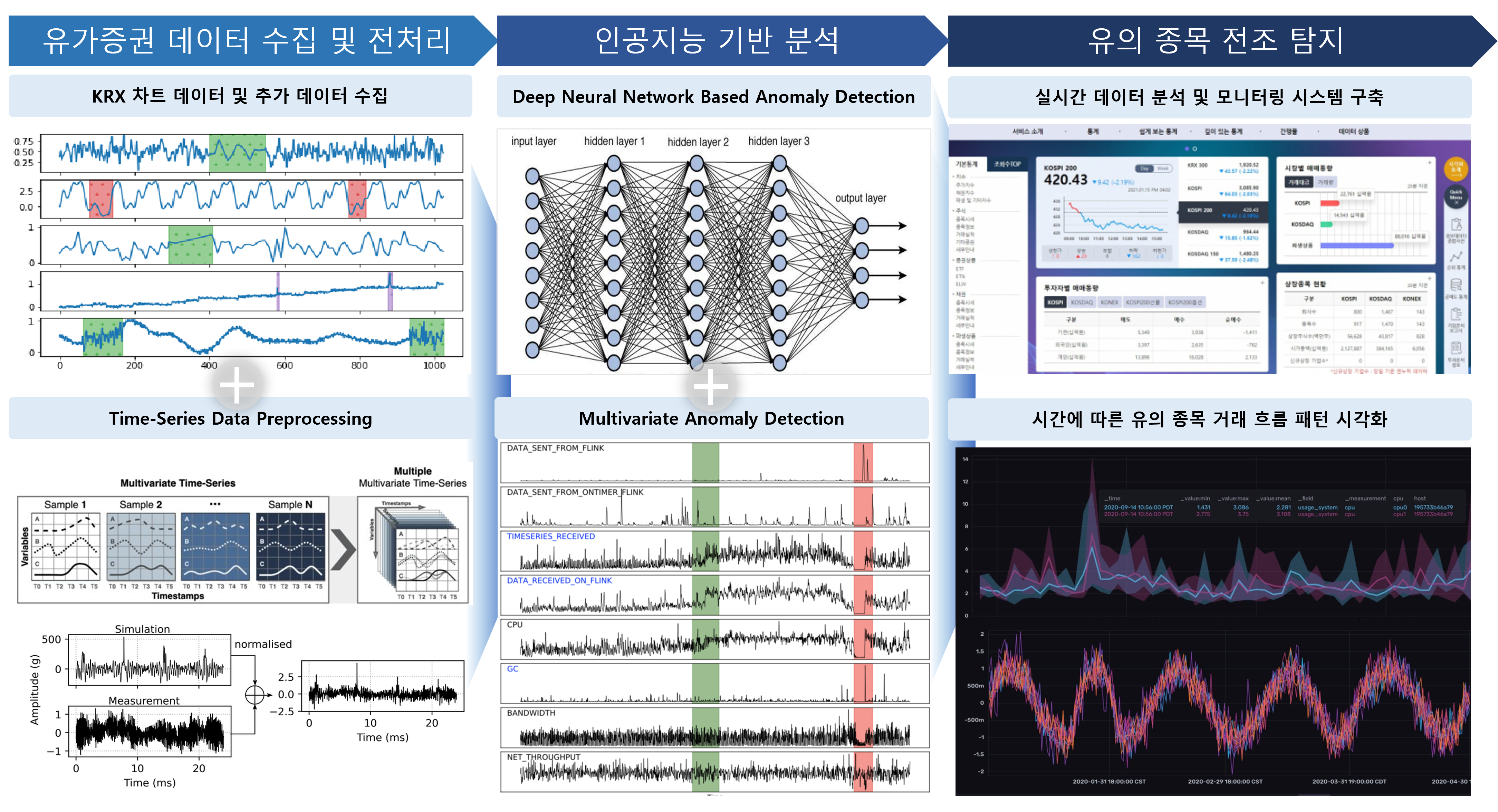 유가증권은 자본증권의 성격을 갖는 증권, 증서 및 이와 유사하거나 관련된 것을 의미합니다. 투자유의종목은 투기적이거나 불공정거래 가능성이 있는 종목, 또는 주가가 비정상적으로 급등한 종목을 경고하기 위해 지정되는 종목입니다. 한국거래소 시장감시위원회에 따르면 2023년 불공정거래 97건이 발생해 약 7,663억 원의 부당이득이 발생했습니다. 이에 따라 한국거래소는 주식시장의 안전성과 투자자 보호를 위해 빠르고 정확한 투자유의종목 탐지 및 선별의 중요성을 강조했습니다. 본 프로젝트는 유가증권 유의종목 전조 탐지 솔루션을 개발하는 것을 목표로 합니다. 기존의 유가증권 히스토리 데이터를 기반으로 훈련된 인공지능 모듈을 사용하여 전조증세의 패턴을 파악하고, 실시간 주식 데이터를 분석해 유의종목을 사전에 탐지하는 기술을 개발하고자 합니다.