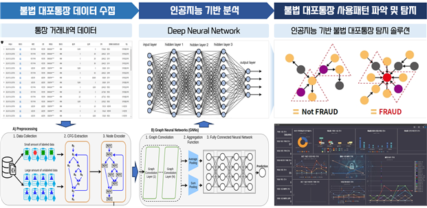 Illegal bank accounts, also known as fake deposit or fraudulent accounts, are opened using the name of a third party, such as another person or organization. These accounts can be used for various financial crimes, including money laundering and fraud. According to the Financial Supervisory Service (FSS), the damage caused by these fraudulent accounts over the past five years exceeds KRW 800 billion, leading to substantial financial losses for financial companies and their customers. Therefore, it is vital to develop technologies that can identify and detect the usage patterns of illegal bank accounts. This project aims to develop an AI module trained on transaction data to understand the usage patterns of fraudulent accounts and to create a detection technology that monitors account transactions in real-time.